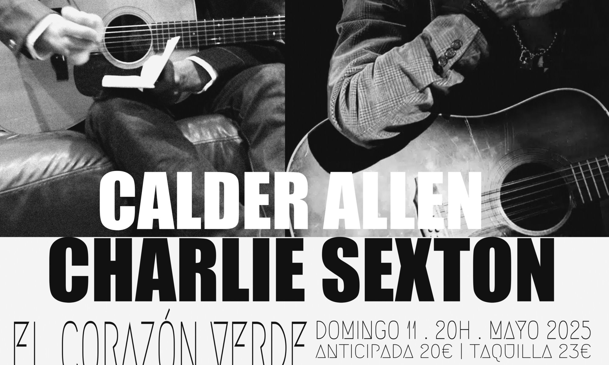 Creo que no es necesario explicar porque estamos tan entusiasmadas con la visita de CHARLIE SEXTON al Corazón Verde. Este DOMINGO 11 DE MAYO A LAS 20H, el cantante, compositor y legendario guitarrista, estará en nuestro escenario junto al joven y talentoso cantante y compositor CALDER ALLEN.