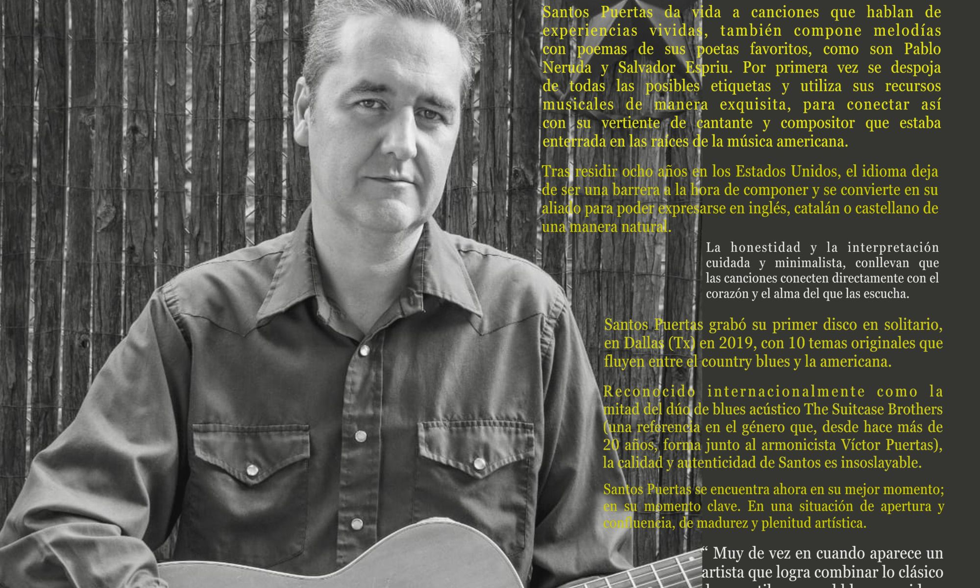 Santos Puertas grabó su primer disco en solitario en Dallas (Tx) en 2019, con 10 temas originales que fluyen entre el country blues y la americana.